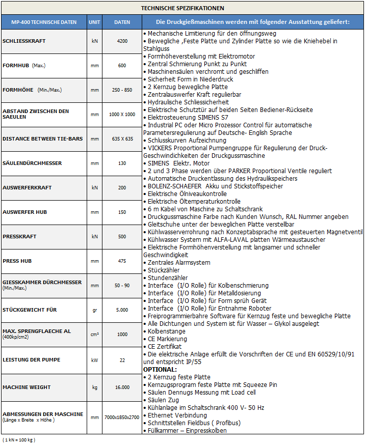 MP-400 MP TONNE Metall spritzgie maschinen Metal Enjeksiyon Makine Çeşitlerimiz MP-160 TON METAL ENJEKSİYON PRESİ MP-200 TON METAL ENJEKSİYON PRESİ MP-300 TON METAL ENJEKSİYON PRESİ MP-400 TON METAL ENJEKSİYON PRESİ MP-550 TON METAL ENJEKSİYON PRESİ MP-750 TON METAL ENJEKSİYON PRESİ MP-900 TON METAL ENJEKSİYON PRESİ MP-1100 TON METAL ENJEKSİYON PRESİ MP-1350 TON METAL ENJEKSİYON PRESİ MP-1650 TON METAL ENJEKSİYON PRESİ MP-2000 TON METAL ENJEKSİYON PRESİ GÖRÜNTÜ VE BOYUTLARI KALIP BAĞLANTI ŞEMASI View the embedded image gallery online at: https://www.metalpresmakina.com/ger/metal-pres-makina-urunler/metal-enjeksiyon-makinalari/mp-400-tonne-technische-daten.html#sigProGalleria0448404c98