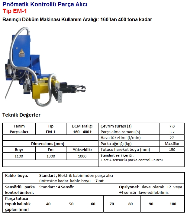 Entnahmeroboter für Maschınen zwischen 750 und 2000 Tonnen