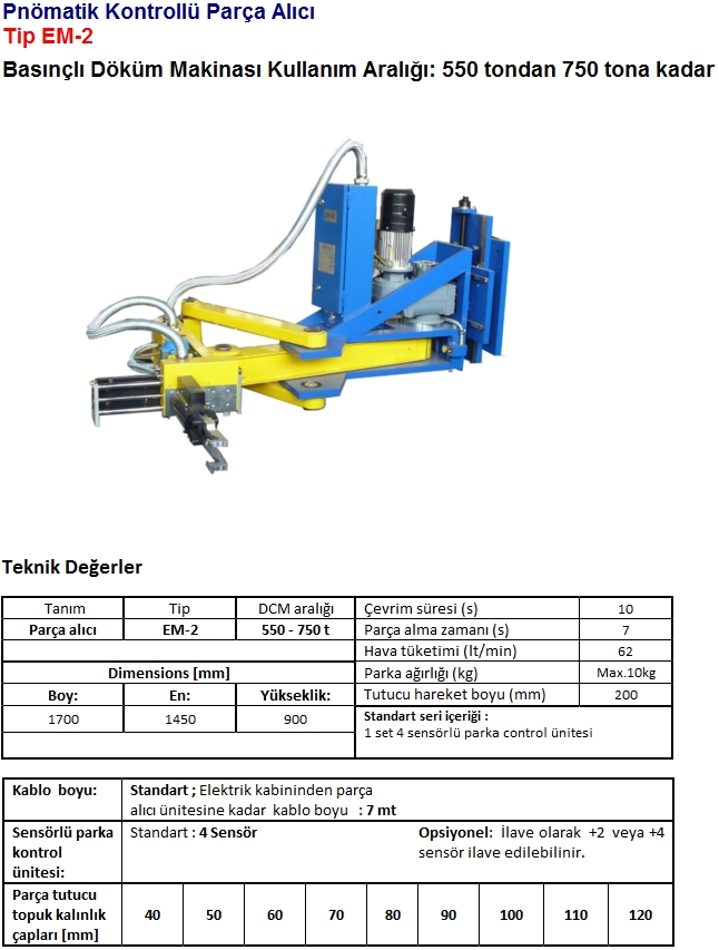 Entnahmeroboter für Maschınen zwischen 750 und 2000 Tonnen